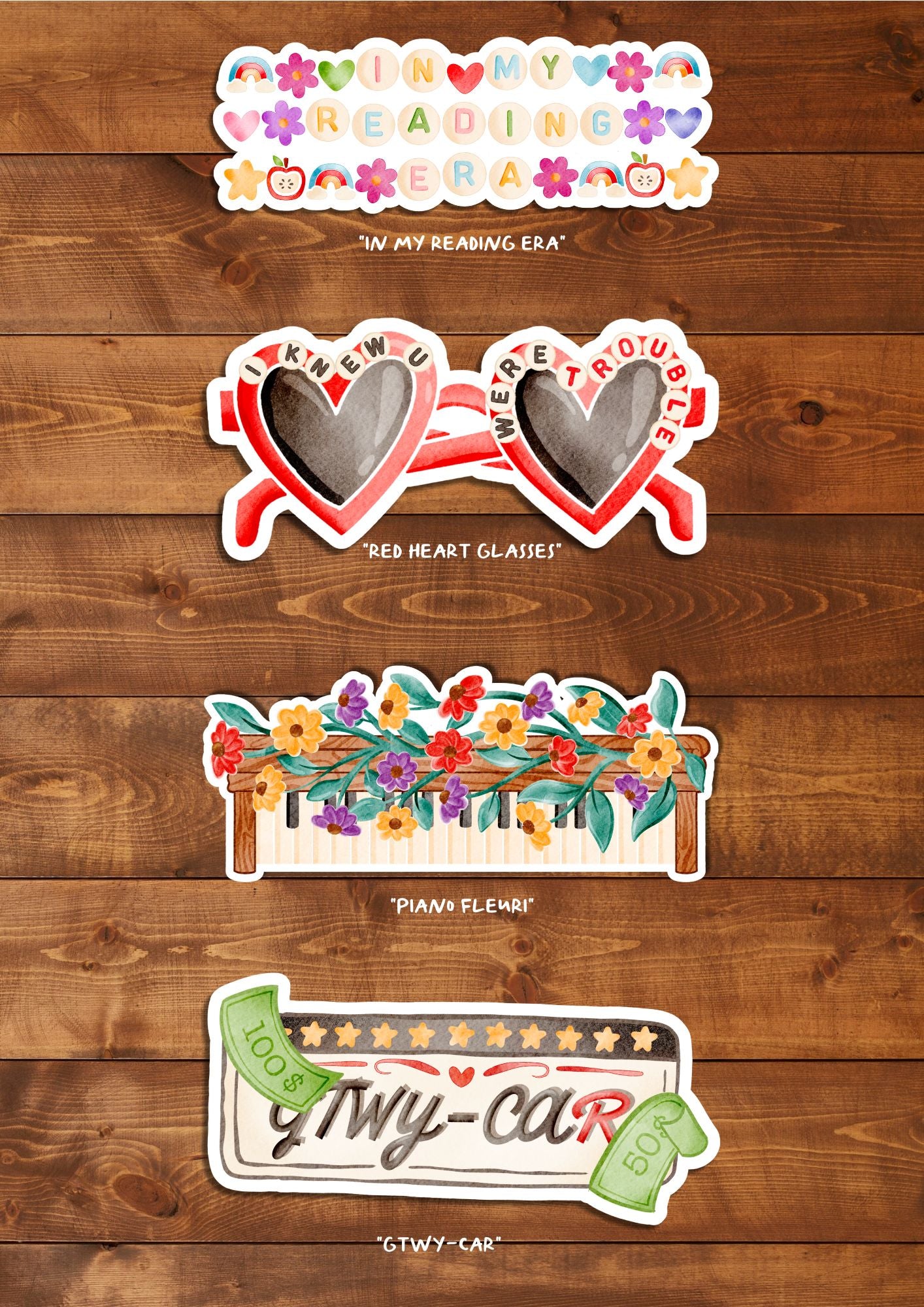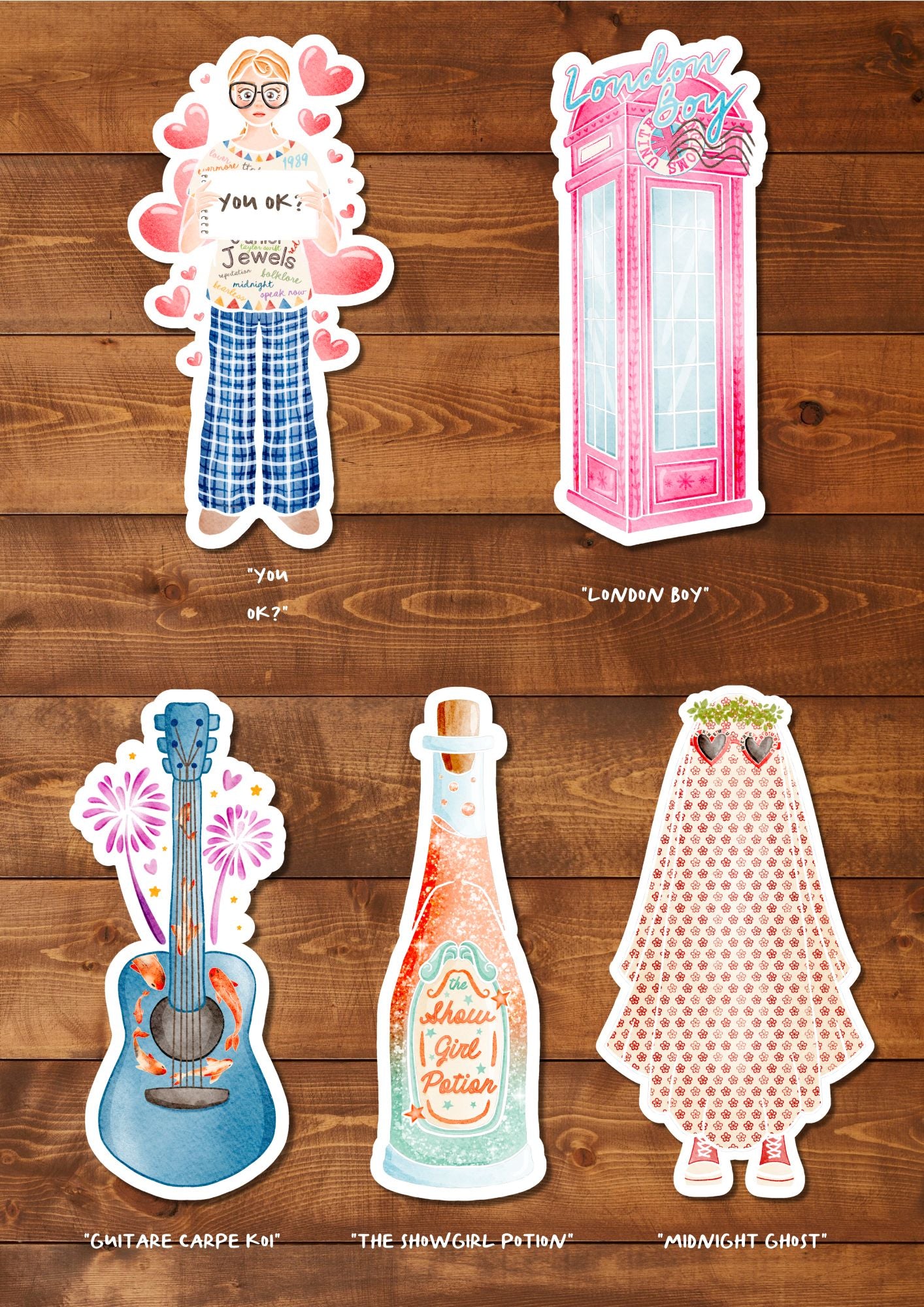 Le kit contient une illustration A6 imprimée sur un papier aquarelle 300 g texturé, une planche de stickers sur papier glacé autocollant laminé à chaud pour un rendu brillant, ainsi qu’un sticker à l’unité assorti.